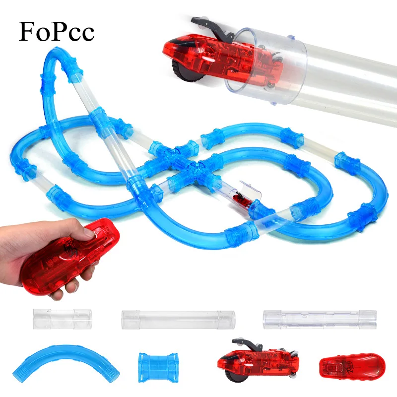DIY Kid Pipe Toy Racing Magic Track Set Remote Control Speed Pipes Car Trucks LED Flash Light Vehicle Building Tube Railway Gift