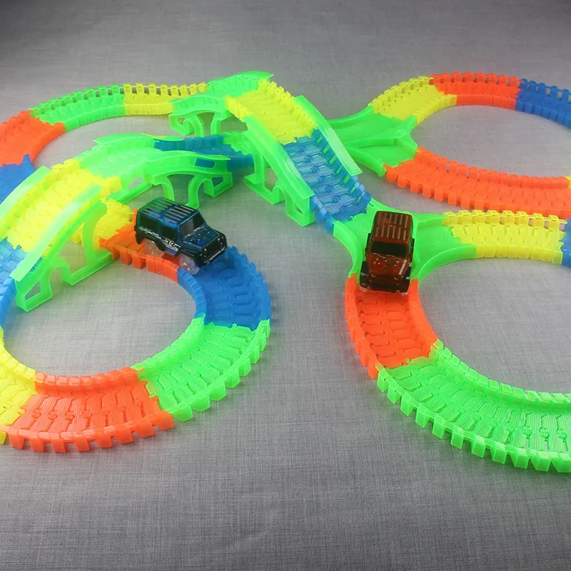 So Amazing Bend Flexible Curve Slot DIY Track Toy Set with glows in the Dark Track LED light Racing Car Toys for children kids