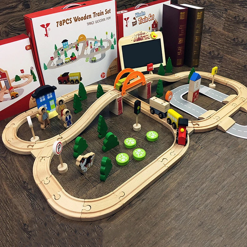 78PCS Traffic Wooden Train Track Magnetic Car Model Slot Puzzles Wooden Railway Early Educational Toy For Children And Friends
